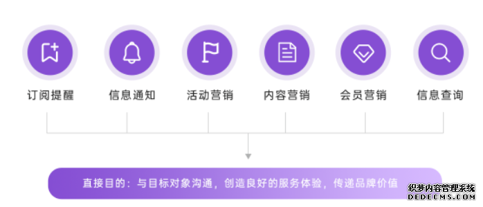 在獲取用戶短信訂閱的許可后,一方面品牌可以主動向用戶發送訂閱通知、活動營銷、內容營銷、用戶激活等類型的營銷短信,實現與用戶的溝通、創造良好的服務體驗,傳遞品牌價值。