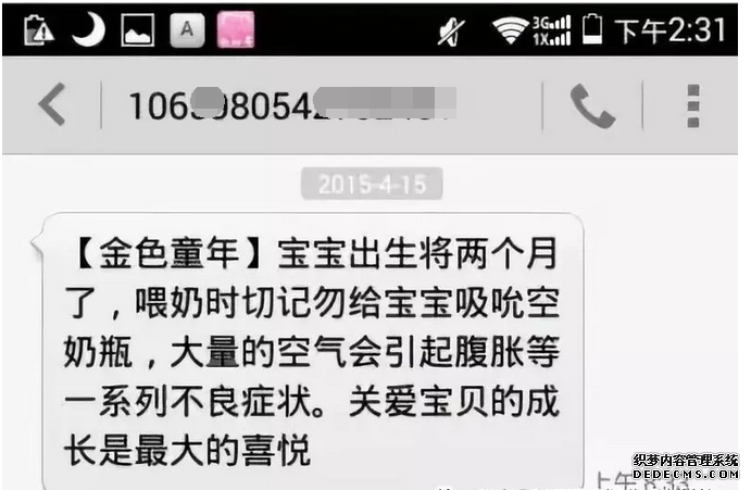 金色童年的知信營銷可以說非常的成功,因為他們針對的是我們這些有孩子的父母,他們知道我們需要什么。所以,他們就以短信的方式一個月左右的時間發一次健康提醒,及需要注意的地方。一個月的時候注意什么,二個月的時候注意什么,他們幾乎每個月都會提醒一次,而不是像有些商家,恨不得一天發幾十條短信。
