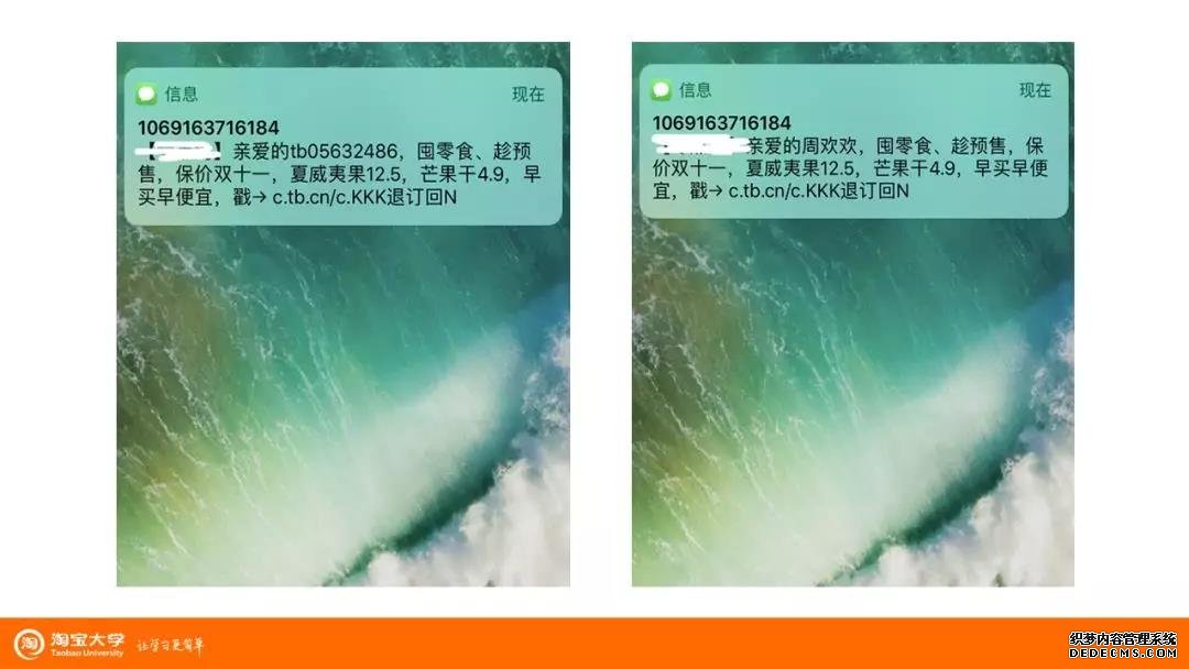 大家看下圖的兩條短信,短信大部分內容相同,那么哪一條會更加容易一瞬間引起我的興趣呢?