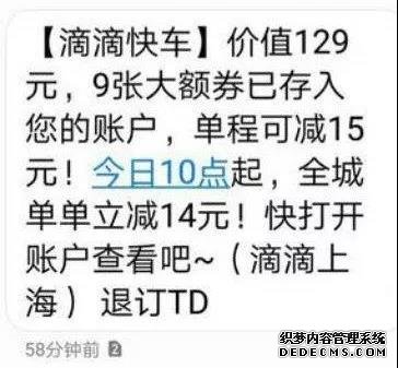 就是這樣的日常營銷短信,滴滴完成了自己的用戶積累,據統計,滴滴在2018年至少發出180億條短信,觸達用戶6億+!