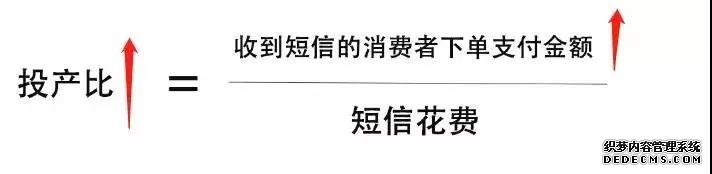 而在大數(shù)據(jù)環(huán)境下,短信營(yíng)銷效果好不好,只需要一個(gè)公式就能算出來(lái),那就是投產(chǎn)比: