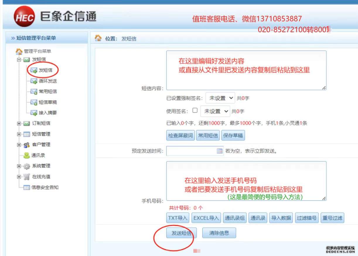 1、招工招聘短信群發(fā),即面向所有發(fā)送對(duì)象的發(fā)送內(nèi)容是一樣的情況下直接用平臺(tái)的群發(fā)功能,如下圖所示。