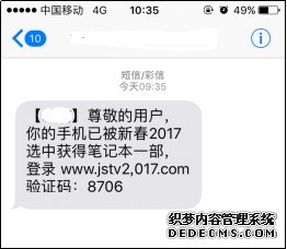 春節將至,又有不法分子打著“新春中獎”的旗號發送詐騙短信。短信中含有釣魚網址,用戶點擊鏈接填寫個人資料后即會被不法分子獲取。廣州巨象提醒大家:收到此類短信一定要多加留意,不點擊短信中的可疑鏈接,不在陌生網站輸入個人重要隱私信息。