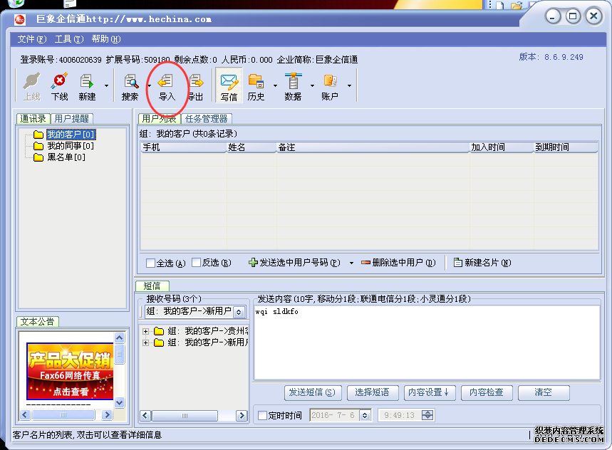 建立好后把您建立好的數據表放在桌面上,打開企信通軟件進行數據導入。